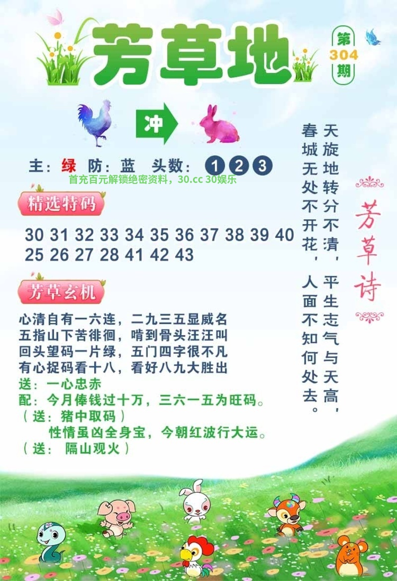 | 304期芳草玄机:心清自有一六连,二九三五显威名。五指山下苦徘徊,啃到骨头汪汪叫。回头望码一片绿,五门四字很不凡。有心捉码看十八,看好八九大胜出。 芳草诗:天旋地转分不清,平生志气与天高。春城无处不开花,人面不知何处去。 特肖:鼠羊虎牛猴马兔 波色:绿蓝 |